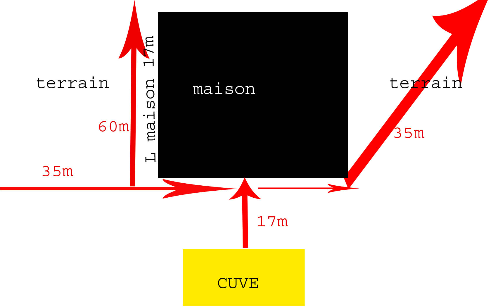 Ensuite entre l'endroit de la pompe et l'extremité de la maison il va avoir max 60m