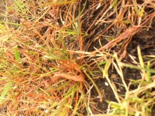 J'ai semé ma pelouse en octobre 2014 et ma pelouse en ce moment devient couleur rouille, elle pousse pas beaucoup et ne talle pas beaucoup. J'ai quelques tipules dans le sol.