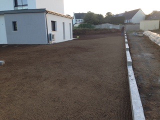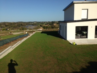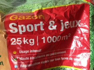 Le gazon est de chez gamme vert sport et jeux usages intensifs. Nous avons préparé soigneusement le terrain mais 1jours après avoir semé il y a eu un deluge de pluie.