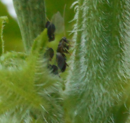 Sur la 1ère, ce n'est pour moi pas un puceron mais plutôt un hyméno. Je ne l'affirme pas mais c'est l'impression que j'ai à partir de cette photo quasiment inexploitable. Il faudrait des clichés nets et précis si tu les recroises.