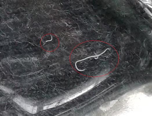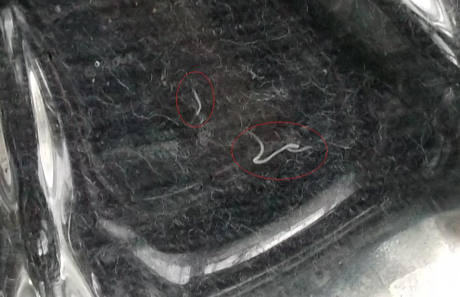 Le récipient en question est un fonds de bouteille découpé qui est posé sur un tapis foncé pour bien voir les bestioles.