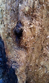 De plus, a coté de la base pourrie du tronc, se trouve une cavité qui risque d'être agrandie en grattant la pourriture.