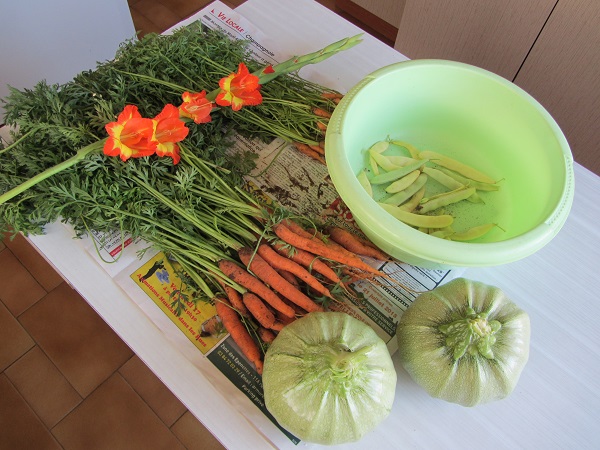 La récolte de haricots était misérable, et le glaïeul, je n'ai pas su comment le cuisiner, alors il a rejoint ses copains dans un vase.