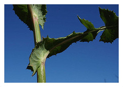Rosette de feuilles basales , et feuilles alternes sur la tige , de forme allongée , lobées avec des lobes dentelées à peine piquants, le dernier triangulaire et plus grand.