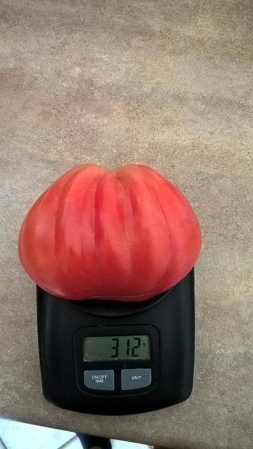 Jusque présent je n'avait récolté que quelques petites tomates de cette variété,mais hier j'ai récolté un spécimen qui est beaucoup plus représentatif de la variété,quoique