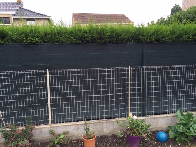 Les thuyas et le brise-vue gris du voisin sont tout contre le grillage blanc ?