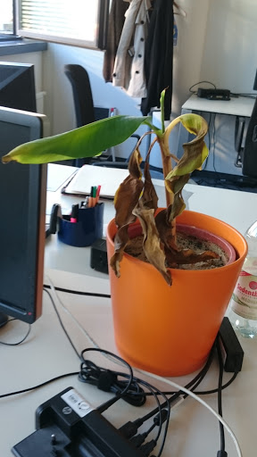 Au boulot je dois m'occuper du bananier d'un collègue pendant son absence de deux mois. Il m'a dit qu'il l'arrosait environ 1 fois par semaine, j'ai donc suivi cette indication à la lettre.