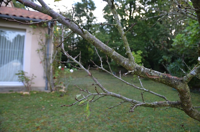 J'ai fait de même pour le poirier qui ne donne que des fruits morts nés - si ça ne suffit pas je le couperais, il est sans doute trop proche d'un sapin et pousse penché.