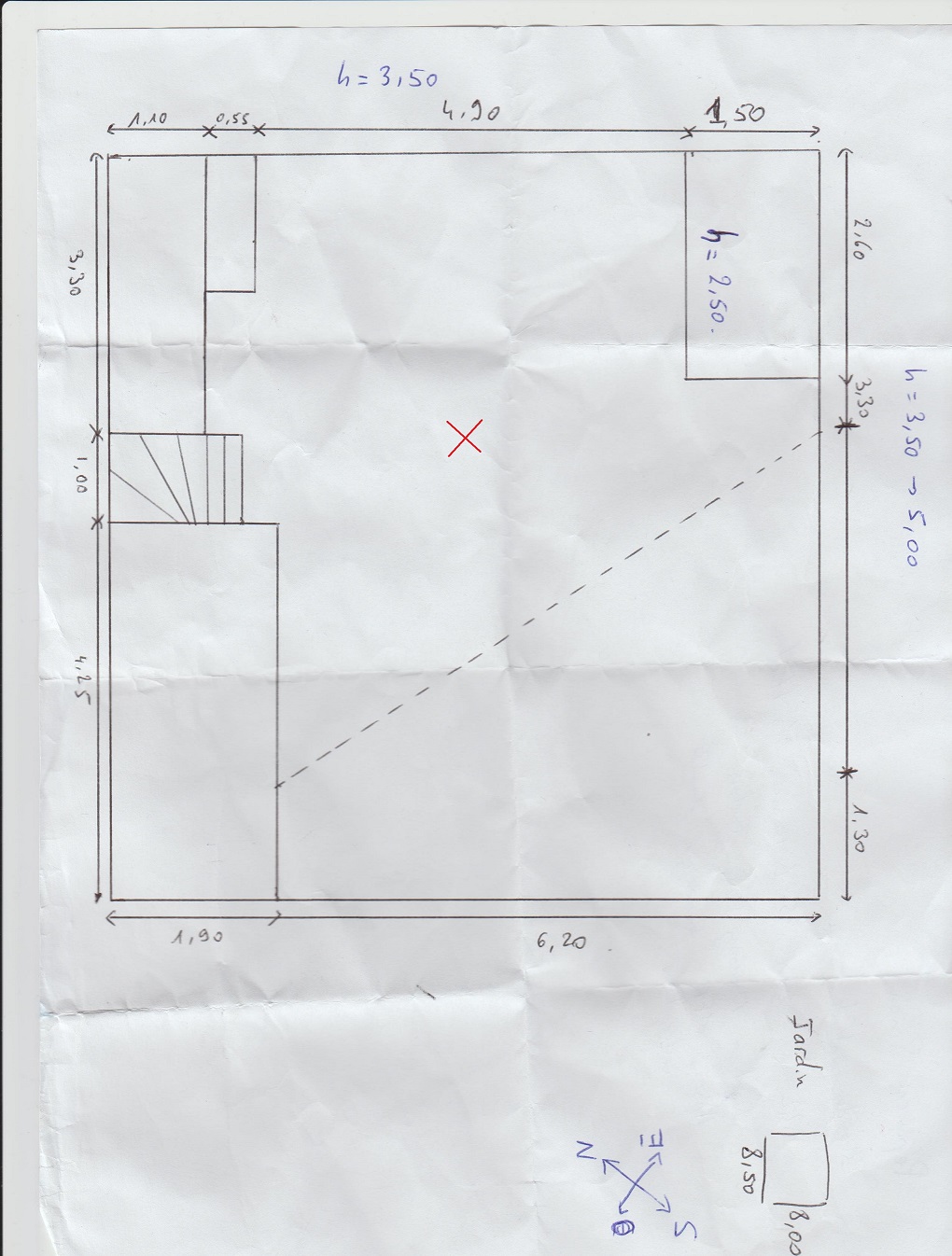 Je joint un plan. Les pointillé sur le plan sont une canalisation d'évacuation à 10 cms sous la surface environ