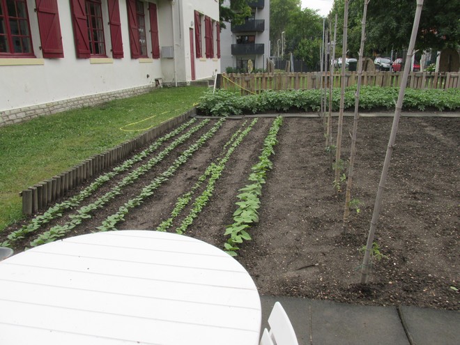 là des haricots verts bien sorties ,des radis, et 8 pieds de tomates plantés ce matin. advienne que pourra.