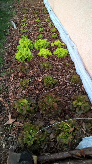 Pour la planche le long du mur,nous avons au premier plan des grenobloises puis des dorées de printemps,puis scaroles,frisée,lolo et enfin grenobloise