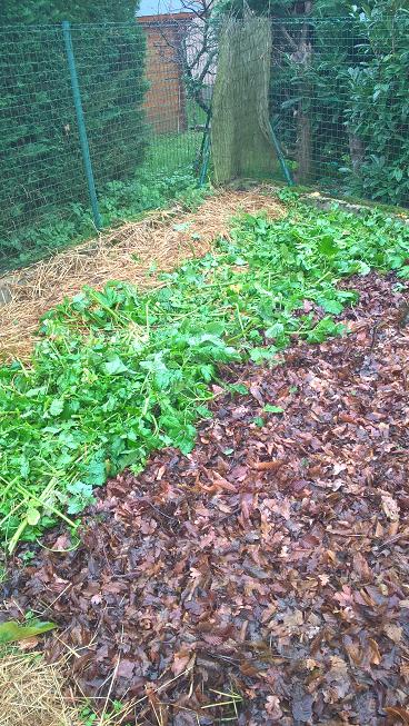Je l'ai fauché aujourd'hui à la faucille puis j'ai saupoudré de la cendre et recouvert avec des feuilles mortes.De nouveaux framboisiers y seront plantés prochainement.