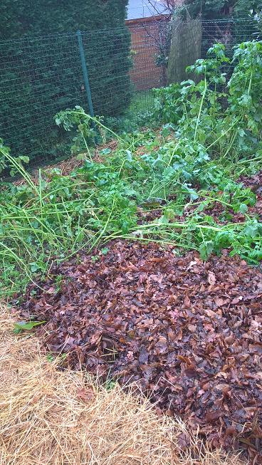 Commençons tout d'abord par l'engrais vert semer au mois d’août à la place des framboisiers et dont je vous parle ICI.Il c'est couché ces derniers jours avec le peu de neige qu'il est tombé et le gel.