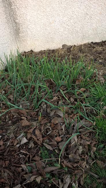 Les échalotes le 22 décembre 2014.<br />Elles mesuraient moins de 10 cm de haut.