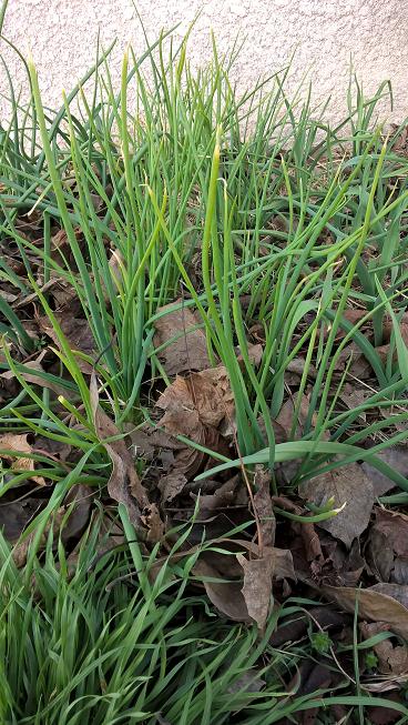 Les échalotes le 26 décembre 2015.<br />Elles mesurent 30 cm de haut.