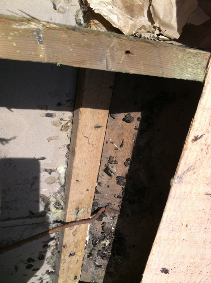 Dans le grenier même, il n'y a aucune trace de crotte ou de destruction d'isolation. La hauteur du bas du toît est à 6,5 mètres.