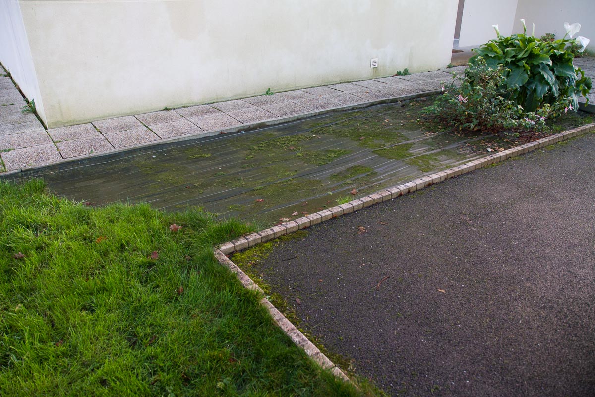 J'avais pensé à l'ardoise, mais il y du bitume juste à côté et j'ai peur que tout ce gris fasse grisouille.
