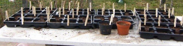 La pince à linge pour quelques semis, pourquoi pas ? Mais avec beaucoup de godets côte à côte, ça va gêner. Elles vont prendre une place énorme en stockage. Et elles ne sont pas utilisables en milieu de bac à semis. Et le prix d'un pince à linge est le double de celui d'une étiquette plastique pour semis.