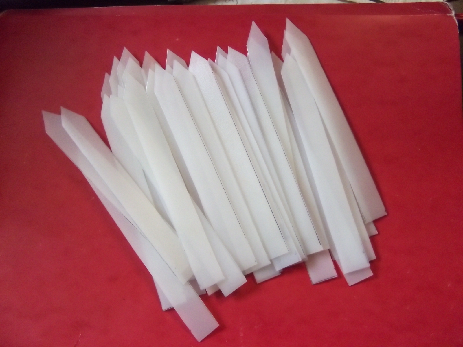 Depuis, j'ai fait un trou de 3 mm vers la pointe. Ca permet de les fixer sur un support plutôt que de les mettre en terre.