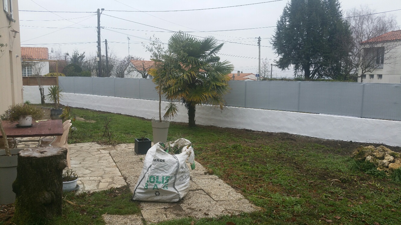 L'ancien propriétaire ayant totalement négligé l'aménagement extérieur, j'ai acheté en toute connaissance de cause, conscient du boulot que j'aurai à accomplir. Un "début de travaux" peut parfois décourager quant à la tâche à accomplir, dans la boue, sous la flotte, en plein cagnard, pendant des heures, des jours, des semaines. Je me souviens avoir commencé au mois d'août sous 30 degrés et quasiment achevé le plus gros du chantier fin novembre sous une pluie battante. Il ne faut pas compter son temps, et appeler des potes à l'aide le week-end, des paires de bras supplémentaires pour les allers-retours brouette, on bouffe ensemble, on se fait plaisir, pour nous, pour s'approprier un joli espace dont on profitera aux beaux jours. La fierté de l'avoir fait soi-même est la plus belle récompense.