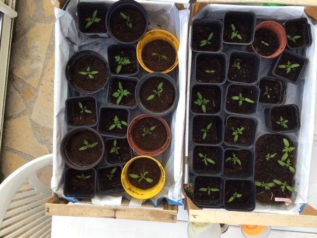 pas beaucoup le temps de potager ces derniers jours mais une belle avancée pour les semis de tomates: visiblement, la véranda leur plait beaucoup!