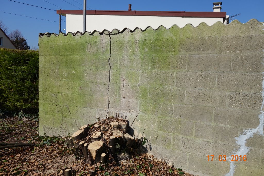 N'ayant jamais utilisé de rogneuse de souche, j'ai peur que les vibrations viennent empirer les fissures, voire accélérer la dégringolade du mur...