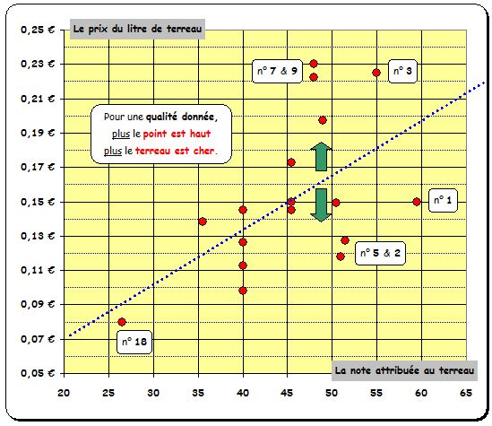 Sur l'axe vertical : le prix du litre de terreau.