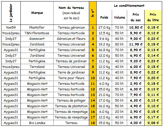 C'est le critère que j'ai donc aussi retenu ici : le prix du terreau au litre.