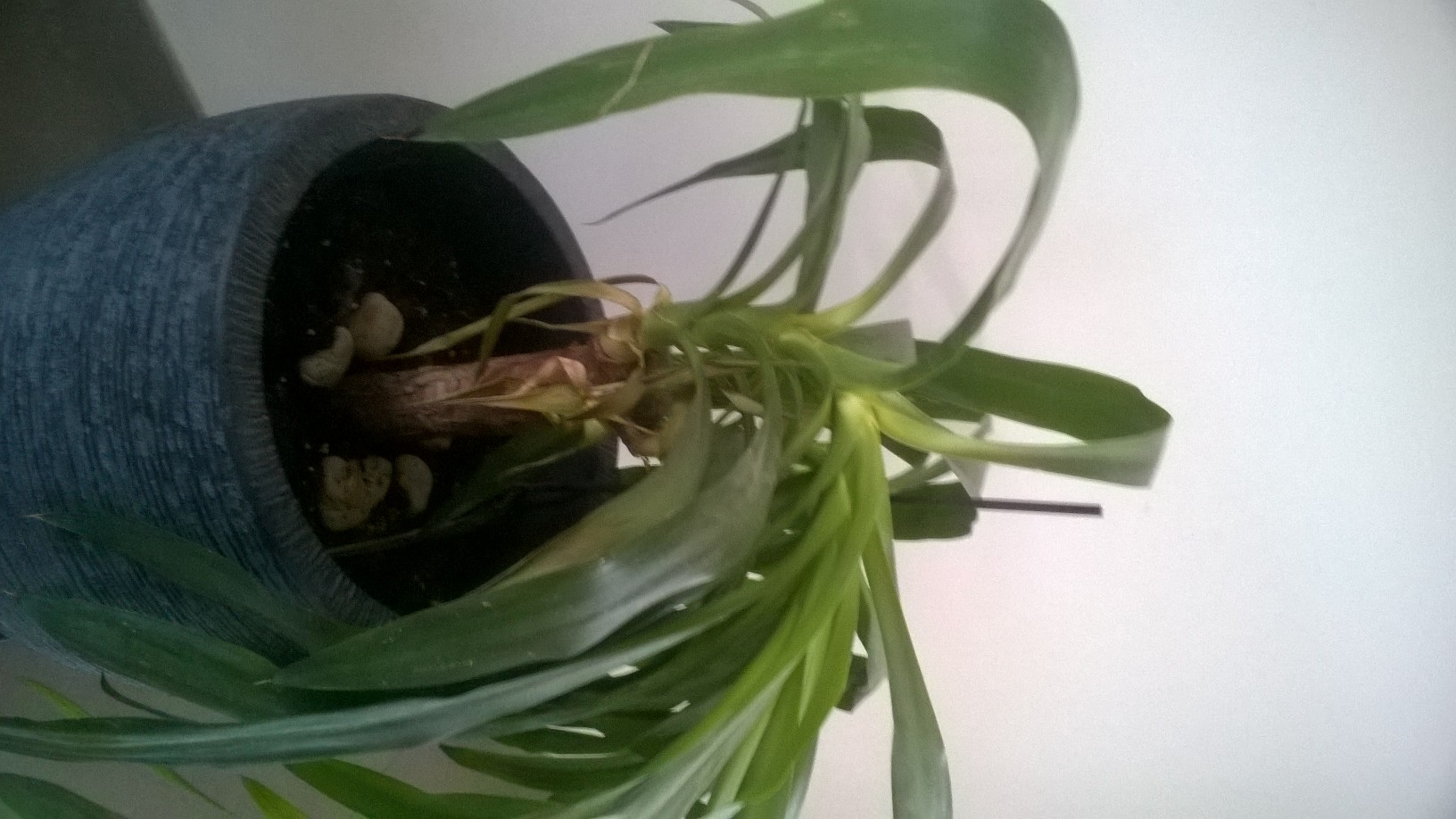 par contre je vois que certaines feuilles (pas toutes), plus d'un côté que de l'autre se sont recroquevillées sur elles--mêmes, j'ai vérifié les racines et pas de racines "pourries" par un excès d'eau,