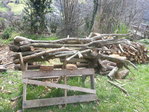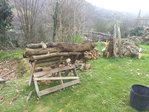 le mieux c'est d'avoir un chevalet à buche 4 pieds en métal galvanisé ( pour 30 € ) tu le plie et tu le laisse dehors :
