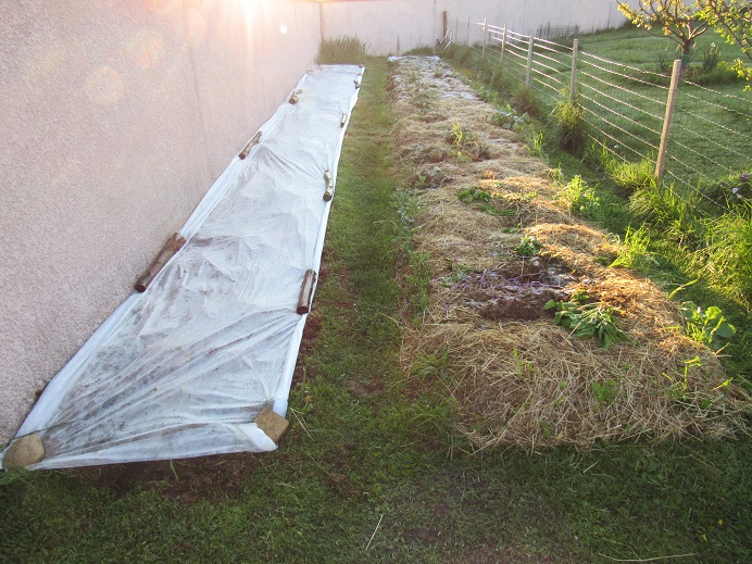 Voici l’aspect du jardin au 19 avril avec ces protections anti gel de P17 bien utiles (-2.2°C ce matin).
