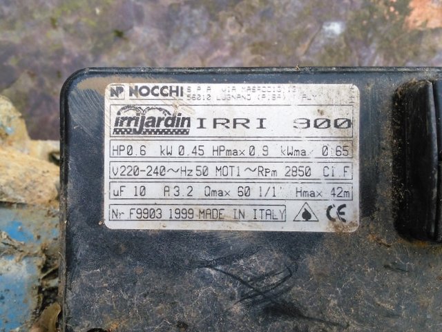 C'est une toute petite pompe que vous avez là, avec un débit nominal (maximum théorique) de 3600 l/h et une pression nominale de 4,2 bar.