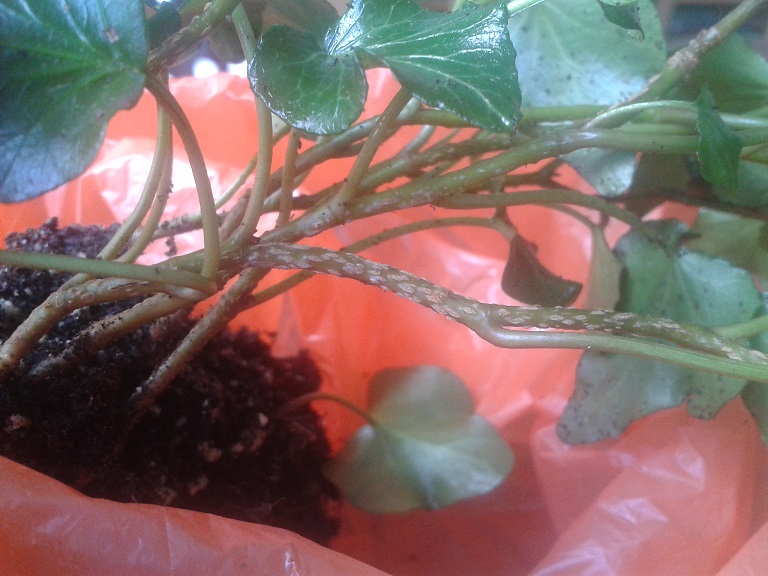 Ce lierre etait ataque par des pucerons (je pense que je l'ai deja achete malade sanq le voir...) et j'ai reussi a les eliminer avec de l'eau melangee a de l'huile d'olive (l'eau avec du savon noir n'a pas marche). Il etait bien mais, maintenant, il a plein de petites "croutes" dans les branches, comme si c'etaient des colchenilles, mais ca bouge pas. Ca peut s'arracher mais ca blesse la branche, c'est genre "interne". Apparemment ca fait aussi tomber les nouvelles feuilles, qui sechent et tombent. La je vois meme une branche noircie, qui meurt...