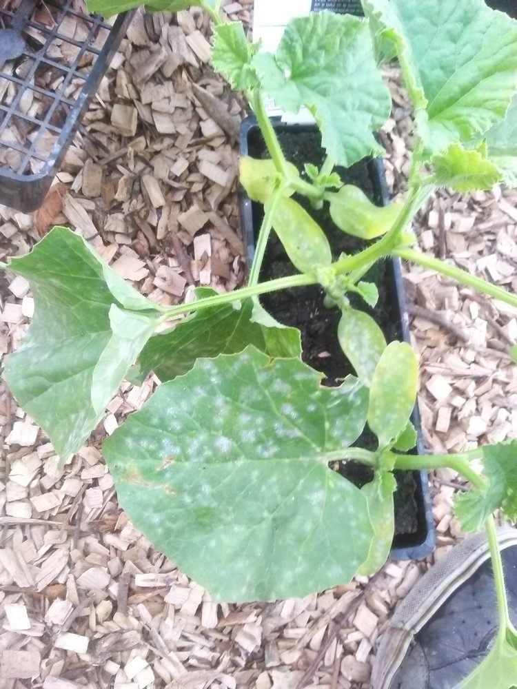 Bonsoir, je viens de découvrir des taches blanches sur mes pieds de melons qui ne sont même pas encore plantés.