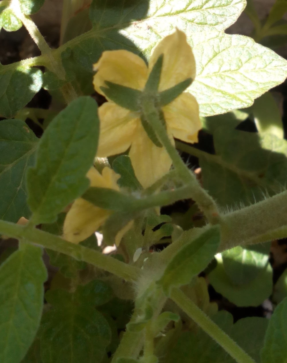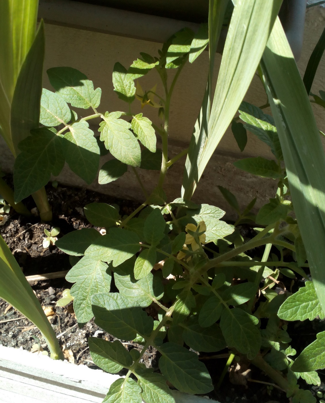 Je partage avec vous une photo d'un de mes plants de tomates que j'ai semés l'année dernière. En fait ils étaient tous encore présents ce printemps (certains m'ont même donnée des tomates en janvier et février lol), mais certains étaient bof. Je ne sais pas le décrire, mais ils étaient vraiment moches, donc j'en ai enlevés deux ou trois que je trouvais louches. Mais je vois que trois sont carrément superbes (aussi beaux que les plants achetés ce printemps) et un fleuri.