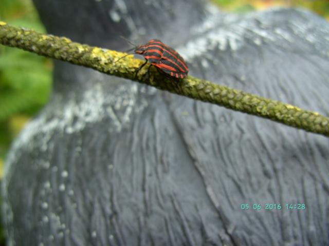 On pourrait donc postuler pour Graphosoma italicum (et non lineatum comme écrit précédemment à tort)....) qui a les papattes noires et qui habite l'Europe( Centre et Nord).