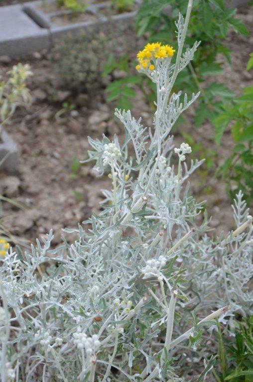 la grise à fleurs jaunes, je dirais du cinéraire maritime.