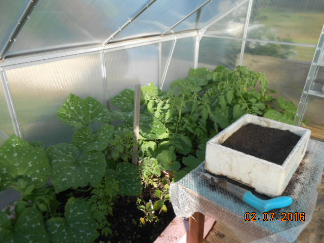 les tomates toujours sous serre, ainsi que les melons aubergines , poivrons , etc !