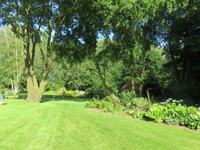 Tout n'était que friches, marécages, roncier etc .. que de travail , de fatigue et inutile de vous dire que le dos s'en souviendra toujours ! hélas .(. vous l'aurez compris quand la visite sera terminée ) . je ne m'en lasse pas car à chaque fois .. il y a toujours de belles découvertes ! Entrez avancez et arrêtez vous ces arbres méritent un petit coup d'oeil .. Passée l'entrée régalez vous avec ce panorama ! la longue bande n'est autre qu'un chemin d'eau ou libellules, grenouilles ont trouvé leur élément ! ..