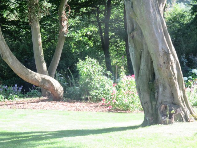 ! Tout d'abord cet arbre " les amoureux " un seul " pied puis deux branches séparées qui s'enlacent plus haut (cet arbre a 30 ans !) . et maintenant avancez et ... les hydrangeas ont d'autres compagnons .. Voici de quoi vous détendre .. je vais continuer plus tard ! . car l'air est irrespirable mieux vaut rester à l'intérieur ! .