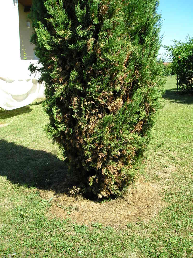 Voici une paire de photos de mon Cyprès de Florence, qui a des branches qui jaunissent un peu partout. Est-ce une maladie? Est-ce un phénomène saisonnier? Est-ce lié au fait que nous ayons eu un hiver et un printemps pluvieux (350 mm de janvier à juin en Tarn et Garonne).