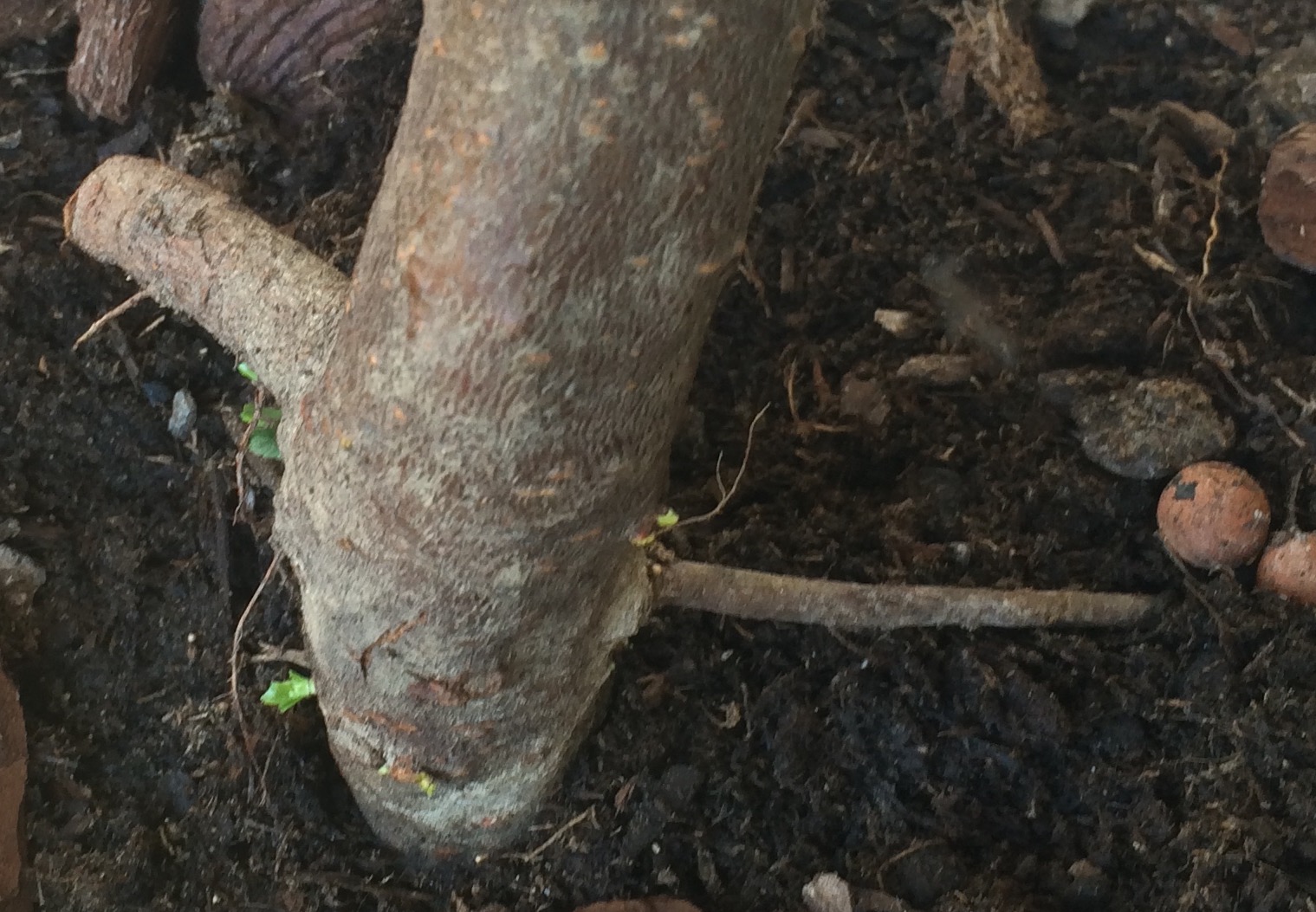 Je veux dire par là le niveau du sol voir sur les 2 photos jointes 2 petite "branches" ou racines , je ne sais pas si celles ci doivent être enterrer ?!