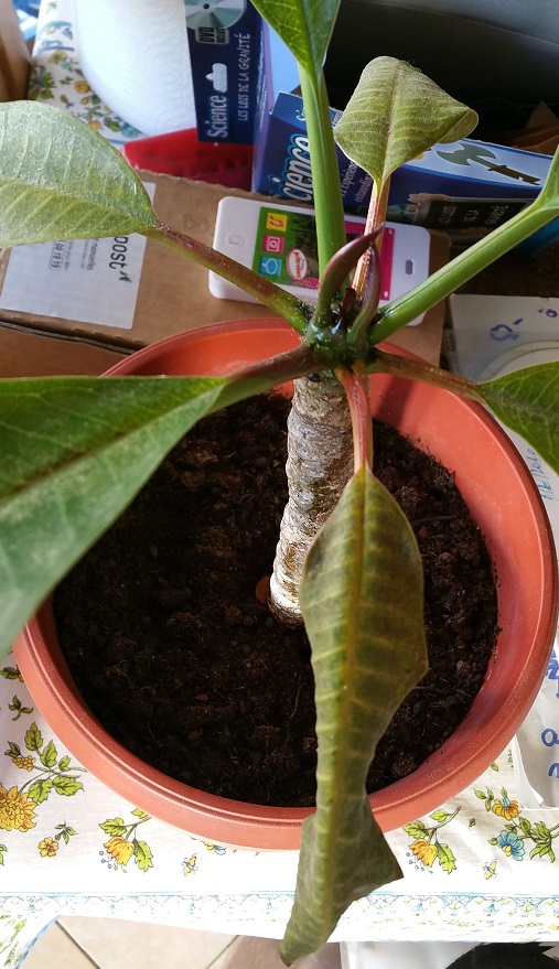 nous avons rapporté d'Hawaii une branche de frangipanier que nous avons planté ce printemps.