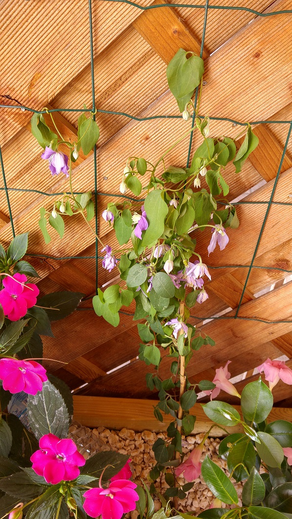 Il y a un mois -peut être un peu plus, j'ai acheté deux bacs en bois et des clématites hybrides, une hagley et une justa.