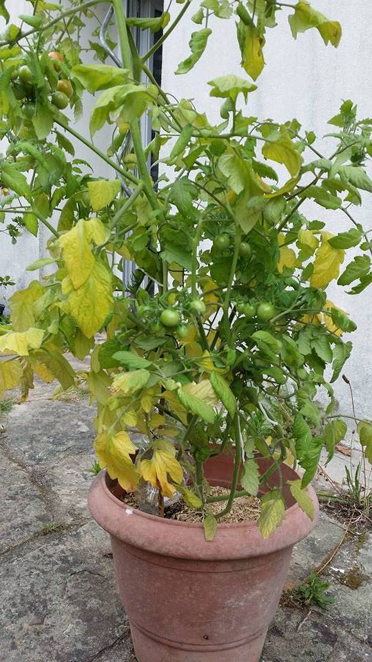 J'arrose comme il faut, dans des bouteilles retournées pour ne pas mouiller le feuillage. J'ai contrôlé le sol il n'est pas détrempé donc je ne pense pas à un pourrissement des racines. Les tomates mûrissent et sont excellentes mais comme j'élimine les feuilles trop jaunes, à force il ne restera plus rien...