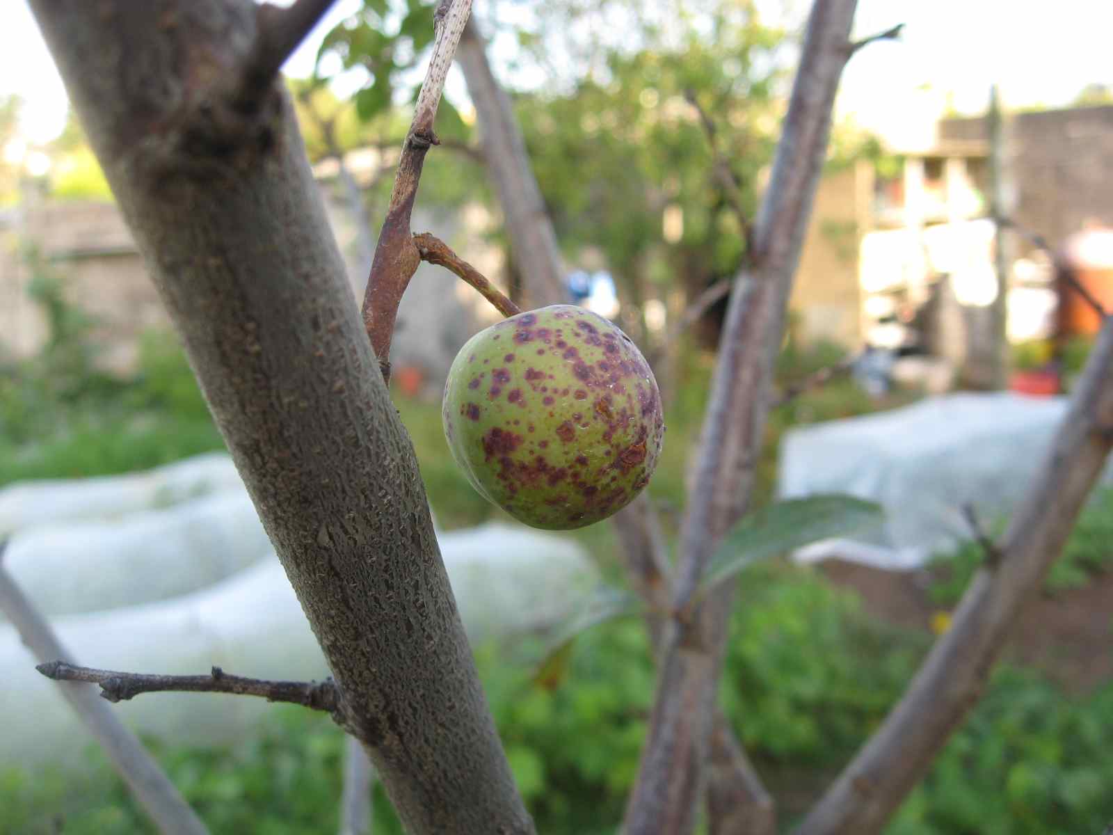 Il a produit cette année une dizaine de fruits, mais ceux-ci sont sont marqués de petits points noirs. Je n'ai jamais eu ce problème en région parisienne où nous possédions également un autre mirabellier de même variété.