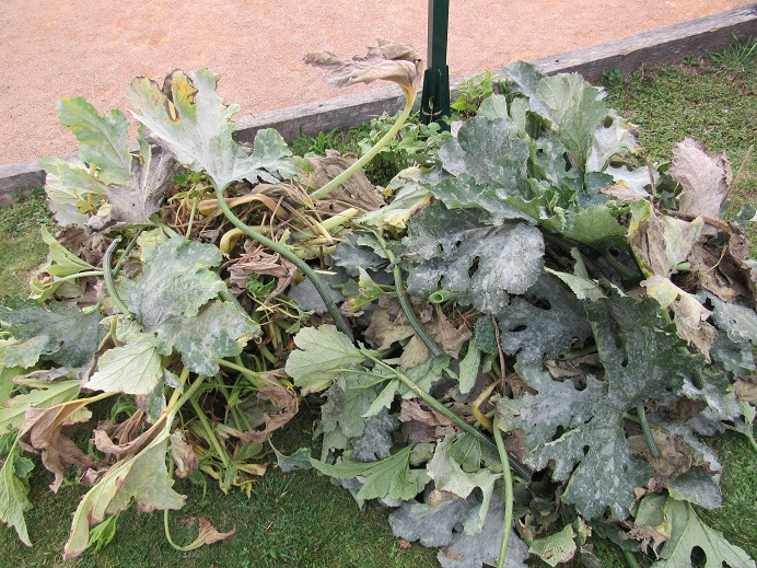 C'est l'oïdium qui te fait des misères ? il faudrait trouver une parade préventive.J'ai chaque année des difficultés à amener mes pieds de courgettes tard dans la saison.