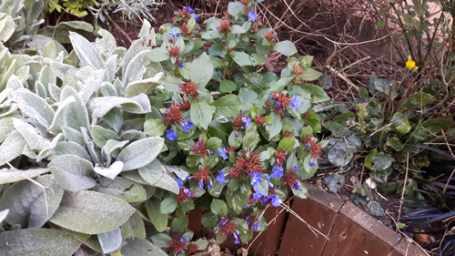 j'ai remarqué dans mon massif cette touffe à tête marron et petites fleurs bleues vif.