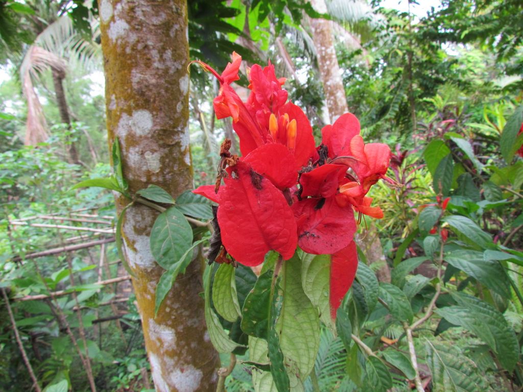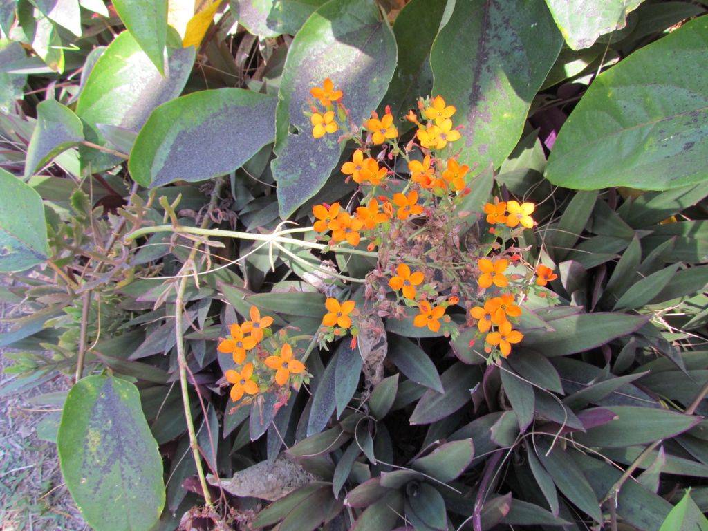 No 1 un joli buisson rouge panaché No 2 : une Erythrina ou rien à voir? No3 : la plante-chocolat à odeur merveilleuse No 4 : une ptite violette No5 : une ptite orange