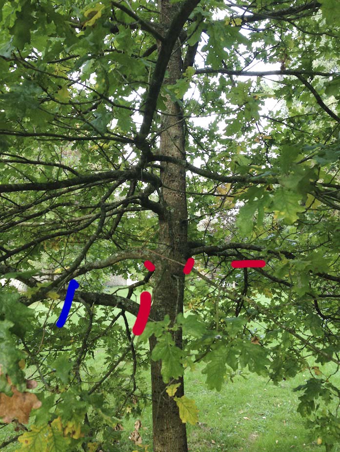 Juste une question, à quoi correspond la coupe en rouge, à droite de la photo qui semble être assez éloignée du tronc ?